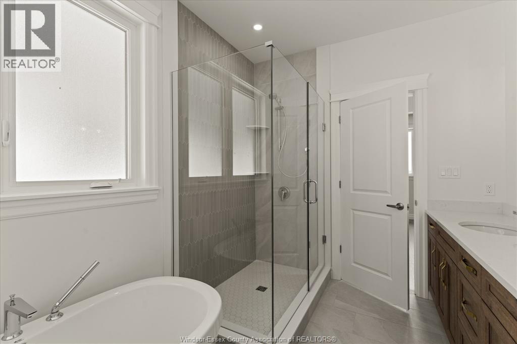 This exclusive corner unit is truly one-of-a-kind—a customized Brighton 1 offering over 2,000 sq ft of elevated living in the heart of Silverleaf Estates, LaSalle. Designed & built by Energy Star certified builder BK Cornerstone, this modern townhome pairs timeless design with contemporary comfort. Soaring 9' ceilings, expansive windows & oversized patio doors flood the space with natural light and invite you out to a private, covered outdoor living area—ideal for relaxing or entertaining. Inside, the chef inspired kitchen is a true showpiece, featuring custom cabinetry, quartz countertops & generous prep space that’s perfect for hosting. The main floor offers two spacious bedrooms and two bathrooms, including a stunning primary suite with a custom walk-in closet and a spa-style ensuite complete with freestanding soaker tub, dual vanities, and a tiled glass shower. This home is ready for your final touches. (id:4555)